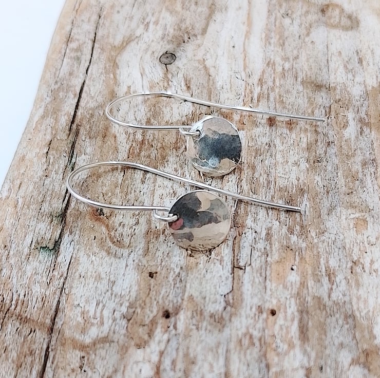 I have hand crafted these beautiful earrings from sterling silver which I have cut into disc shapes, carefully finished, hammered and then slightly domed to create an attractive design.