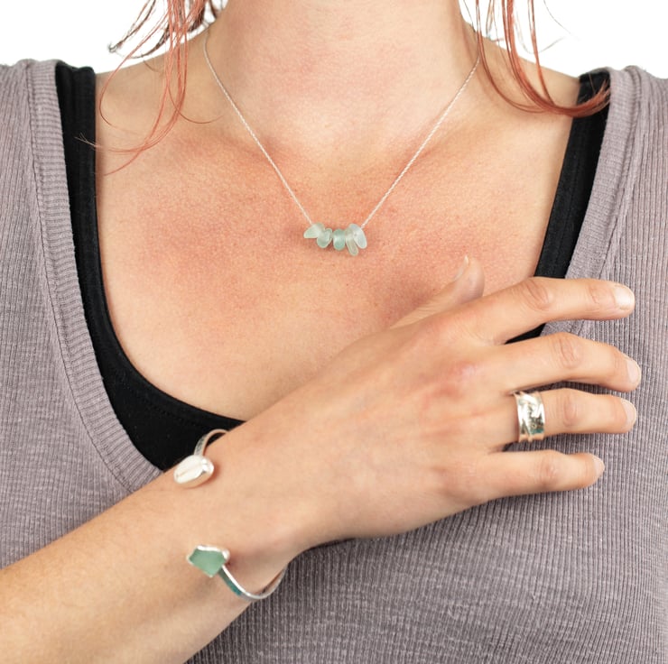 This beautiful sea glass and cowrie shell cuff bangle is one of my favourite pieces to make.