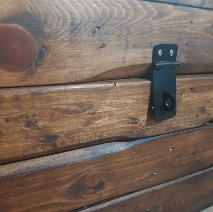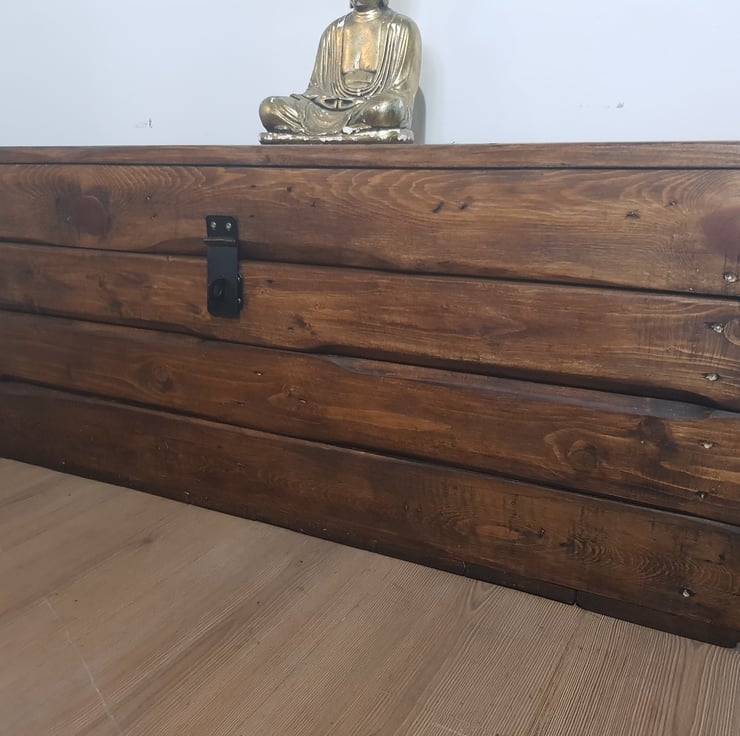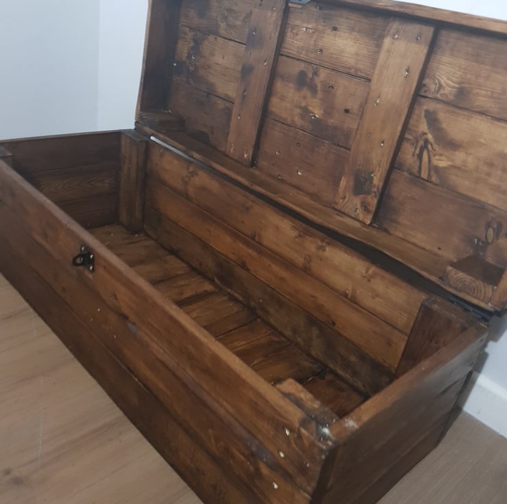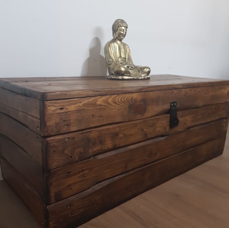 Rustic wooden storage trunk/chest. Handmade from reclaimed pine with a hinged Clamshell lid and lockable hasp