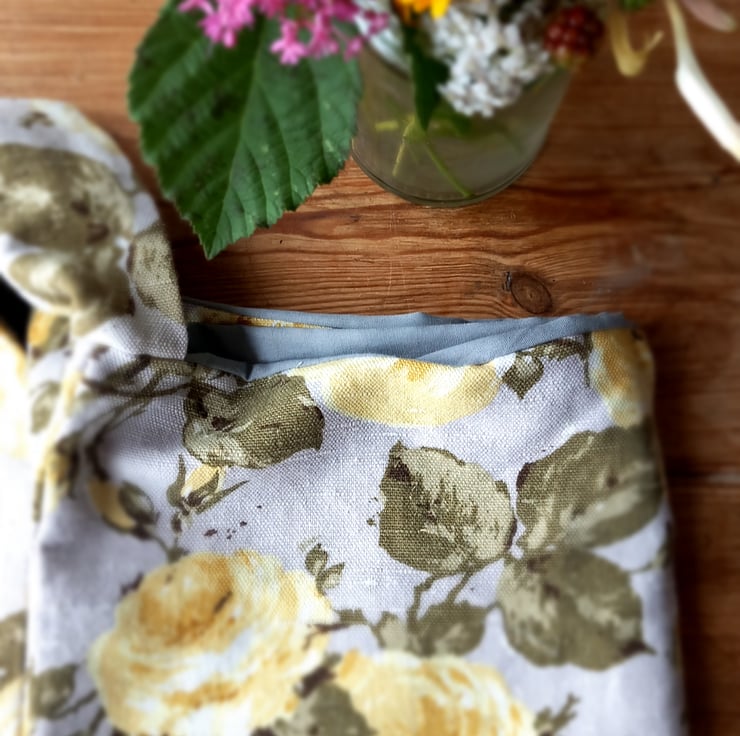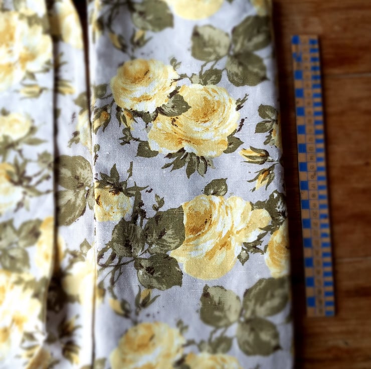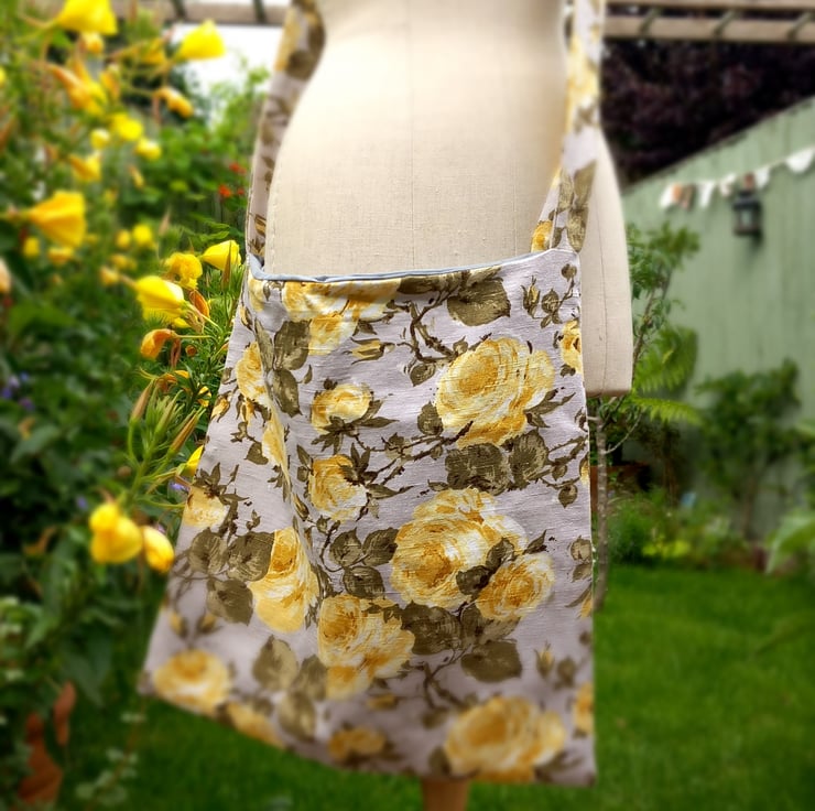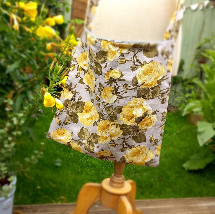 Handmade , lined and all seams are overlooked inside. Pretty yellow roses. Ideal for a medium / tall person as lovely long strap to wear across the body.