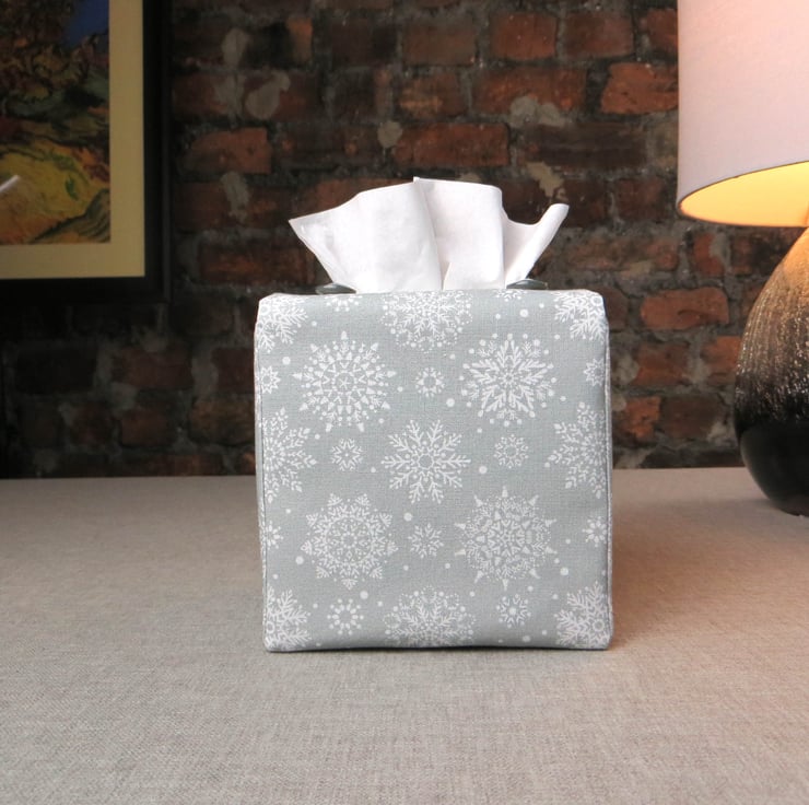 Printed cotton tissue box cover handmade in Glasgow, Scotland