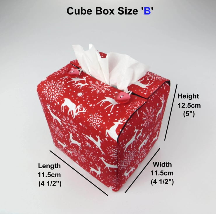 If your tissue box size is different than the measurements listed above, select the 'Custom Size' option and enter your tissue box measurements (height, width, and length) in the 'Custom Size' option box above.