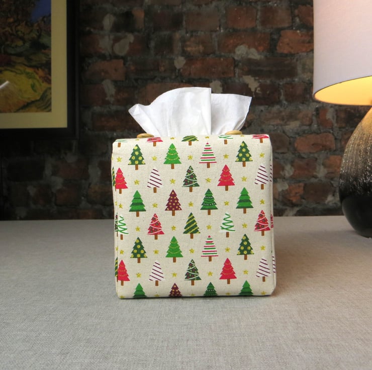 Printed cotton tissue box cover handmade in Glasgow, Scotland