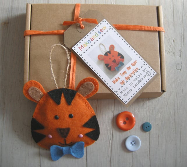 Make and sew this cute Tony the tiger felt decoration with this craft kit. The tiger can be made with a blue bow tie or a pink bow tie.