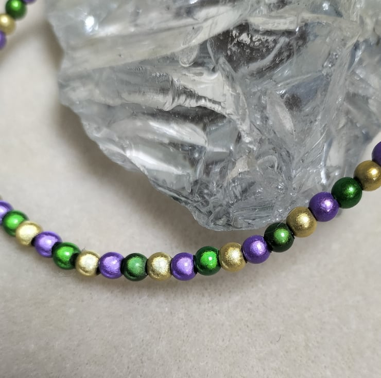 This stunning anklet is 9.5" long thread onto elastic using 4mm green, yellow and purple miracle beads .