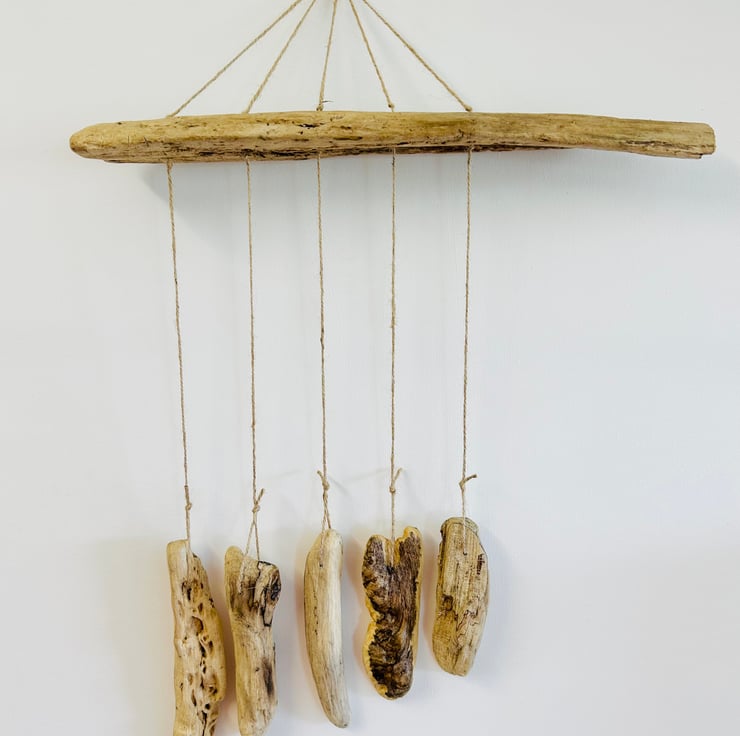 Driftwood mobile created using driftwood pieces gathered from Cardigan bay.