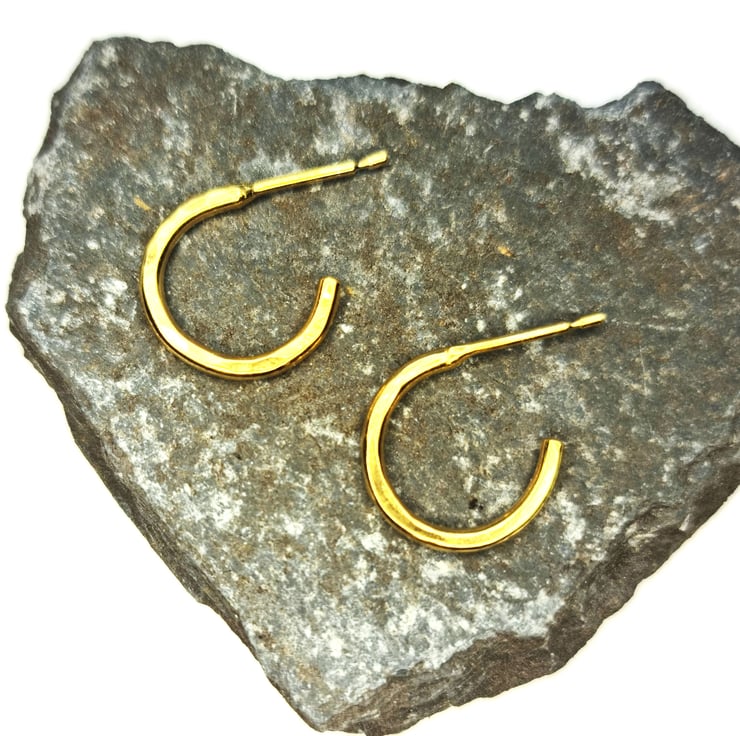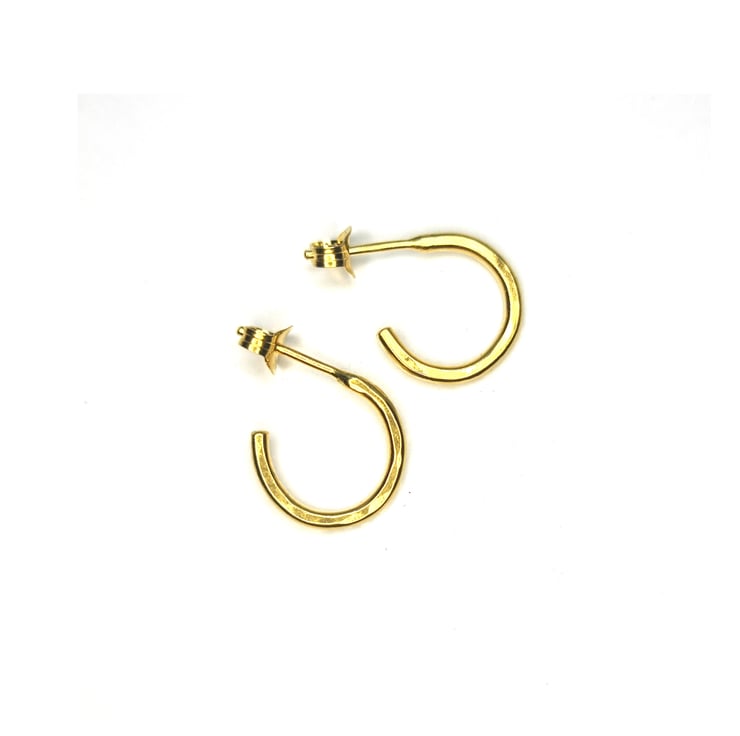Crafted in solid silver with a vermeil plating of beautiful 22ct yellow gold, these hoop earrings have a gorgeous hammered finish adding extra sparkle and a beautiful texture.