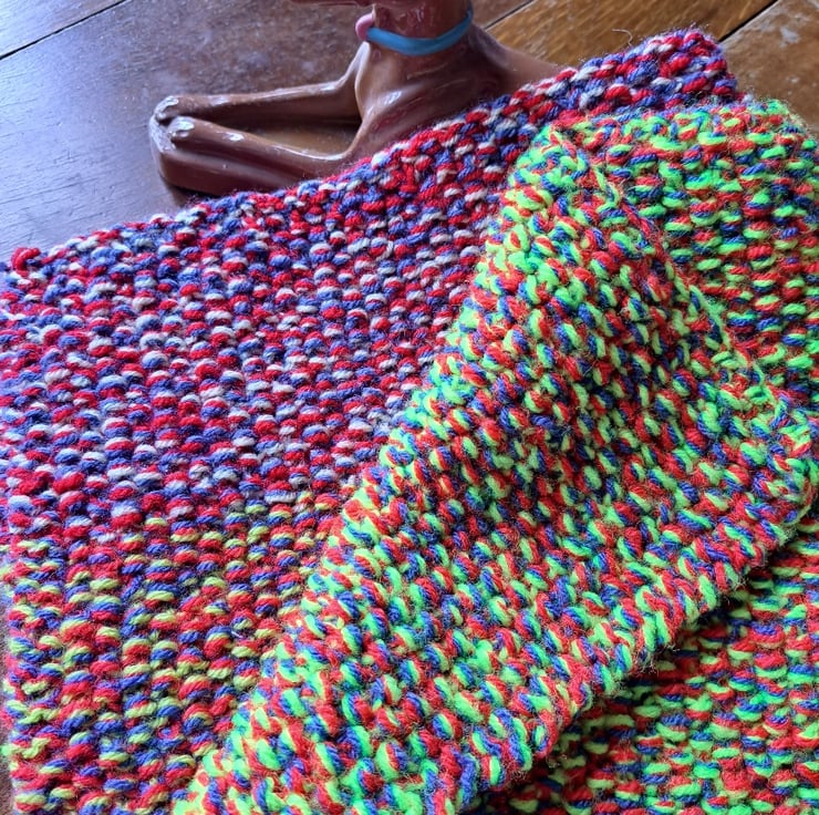 My mum knits pet blankets from left-over wool. Thick and soft, they're made out of new and unused washable acrylic yarn, each example a one-off.