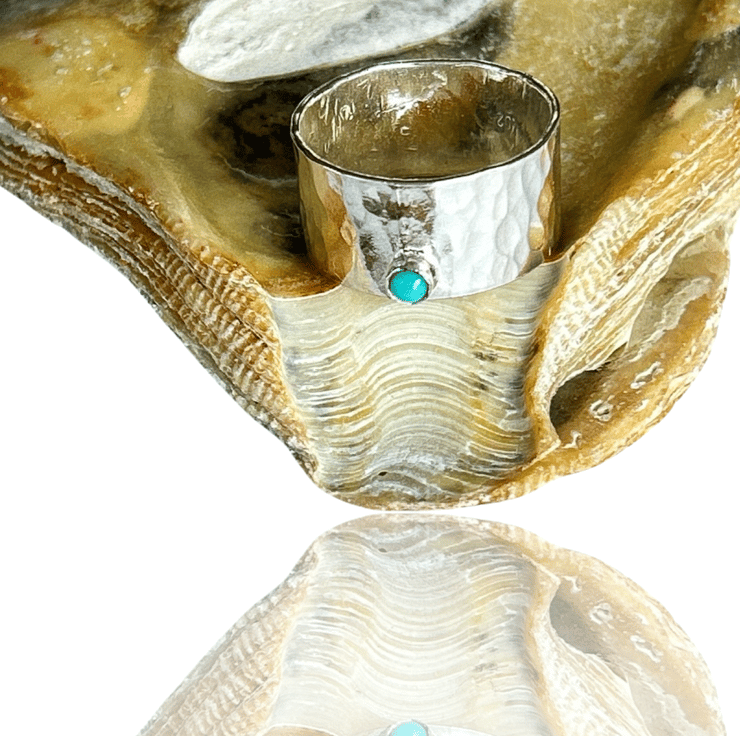 At the base of the ring I have added a 3mm Turquoise gemstone, adding a pop of colour.