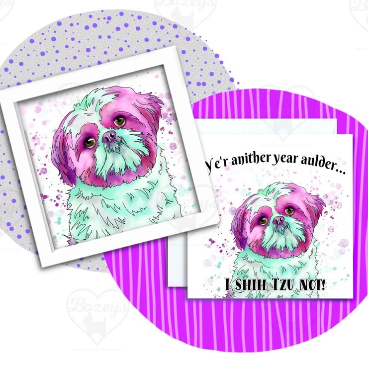 Measuring 6x6" or 15x15cm, with a high quality, textured white envelope, these fabulous Doric greetings cards are printed on gorgeously glossy 260gsm photo-quality card. They are blank inside for your own message and have a lovely wee tagline on the back (a bozey is a warm hug).