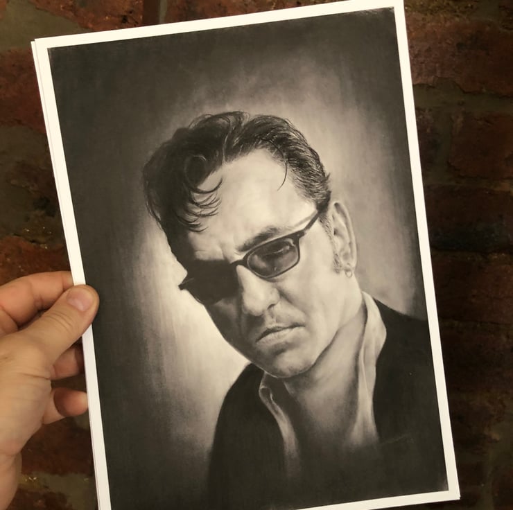 Print of my charcoal drawing of singer songwriter guitarist Richard Hawley. This will be posted in a flat cardboard envelope or the larger A3 size in recycled cardboard tube.