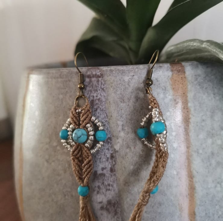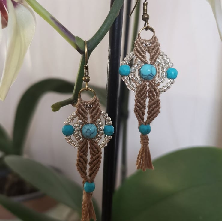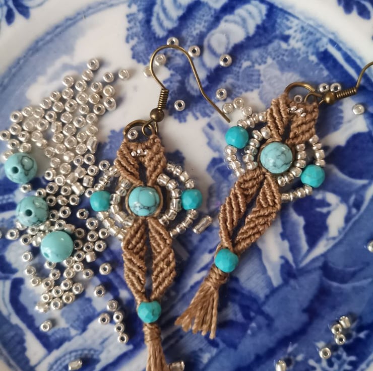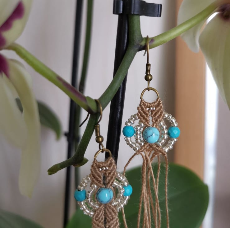 Each pair of earrings is expertly handcrafted using soft, high-quality nylon thread, ensuring a comfortable and lightweight feel when worn. The macramé technique employed in their creation adds a delightful texture and visual appeal, making them true statement pieces that are sure to turn heads.