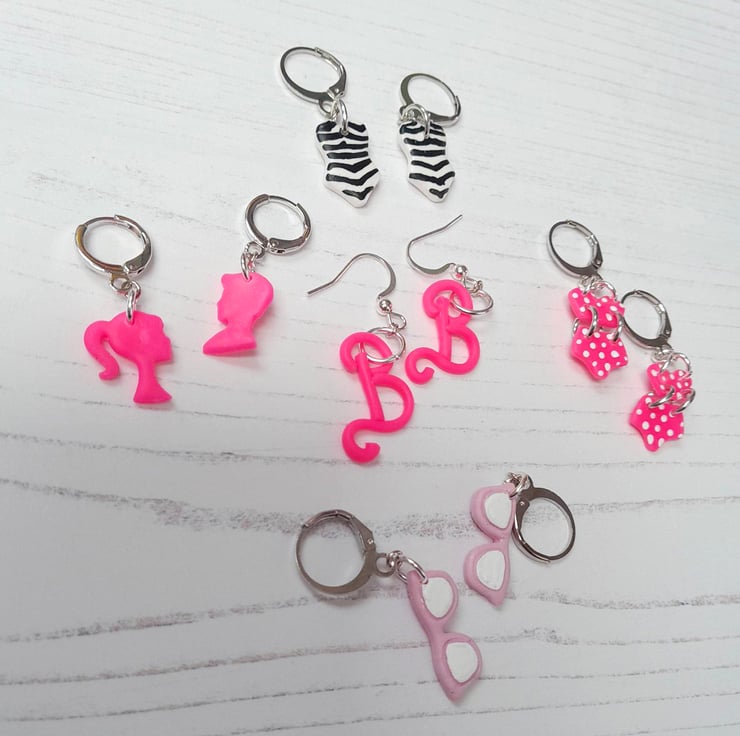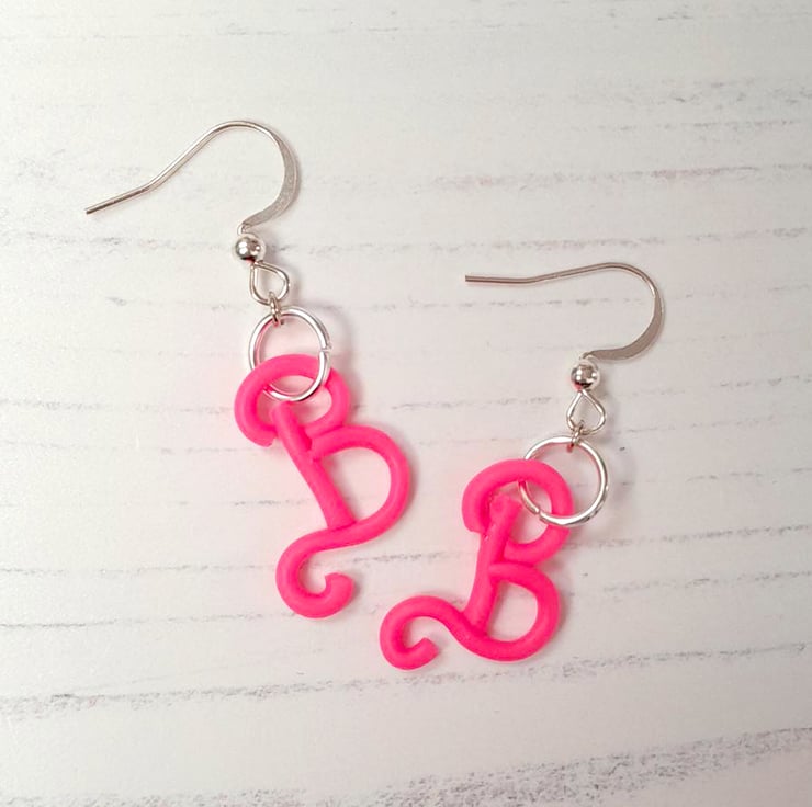 These cute Barbie 'B' letter earrings have been carefully hand crafted using hot pink polymer clay, fixed onto silver plated fish hook style fixings for a drop effect.