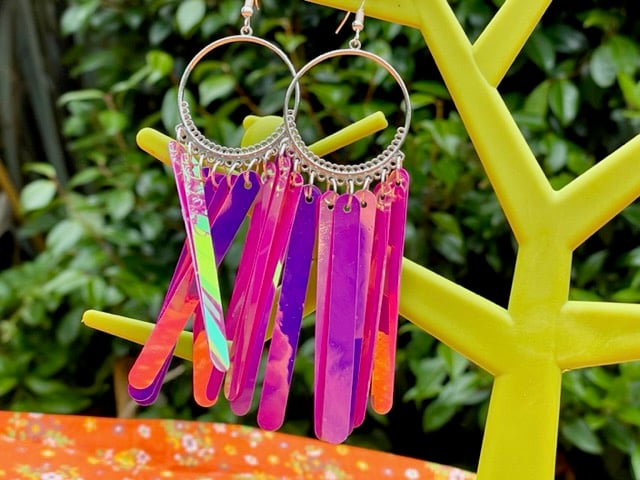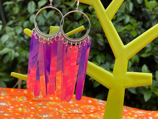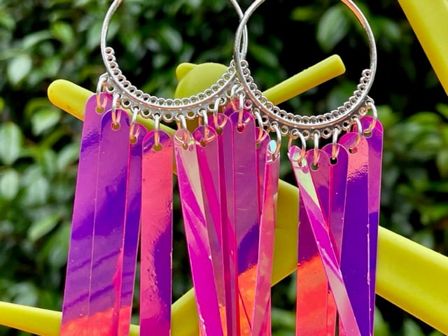 I've used straight hot pink sequins and fitted them to stainless steel hoops. I've finished off with hypo allergenic ear wires and stainless steel jump rings.