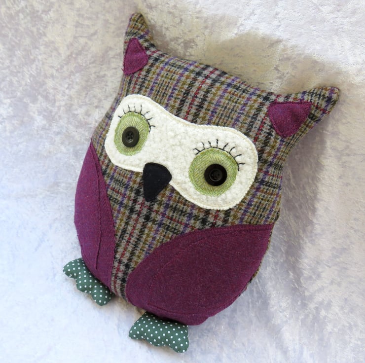 The eyes are made from vintage buttons and the eyelashes have been embroidered by hand.