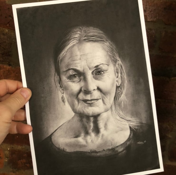 Print of my charcoal drawing of Vivienne Westwood. Printed on quality 230gm paper. This will be posted in a flat cardboard envelope.