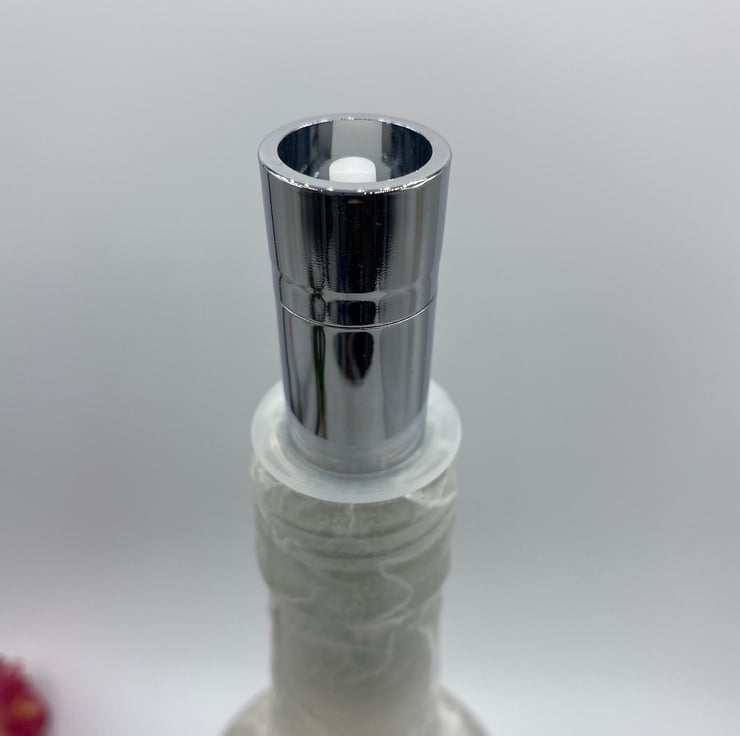 The bottle is lit by a set of 20 LED lights on a wire running from a metal cork which fits in the top of the bottle. The cork lights are battery operated using a single AA battery which can be easily replaced by unscrewing the top of the cork.