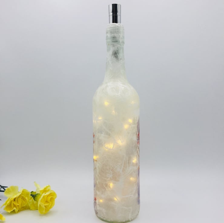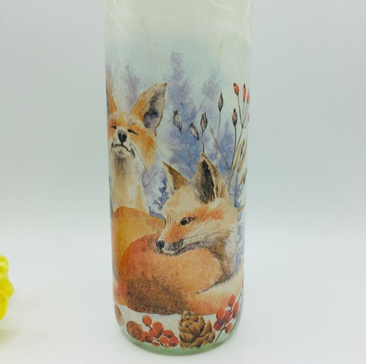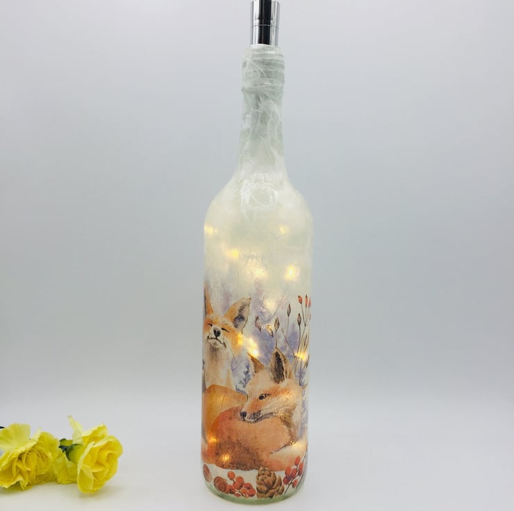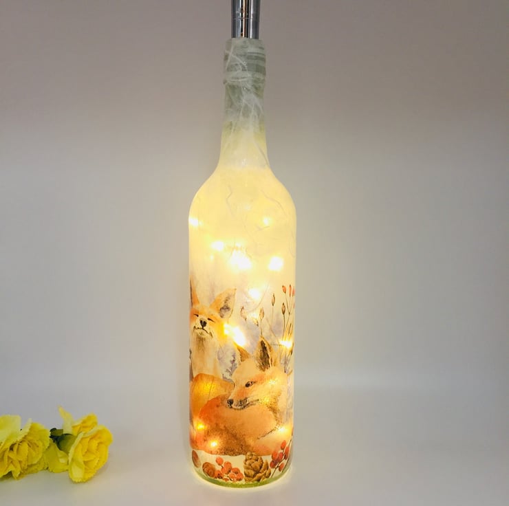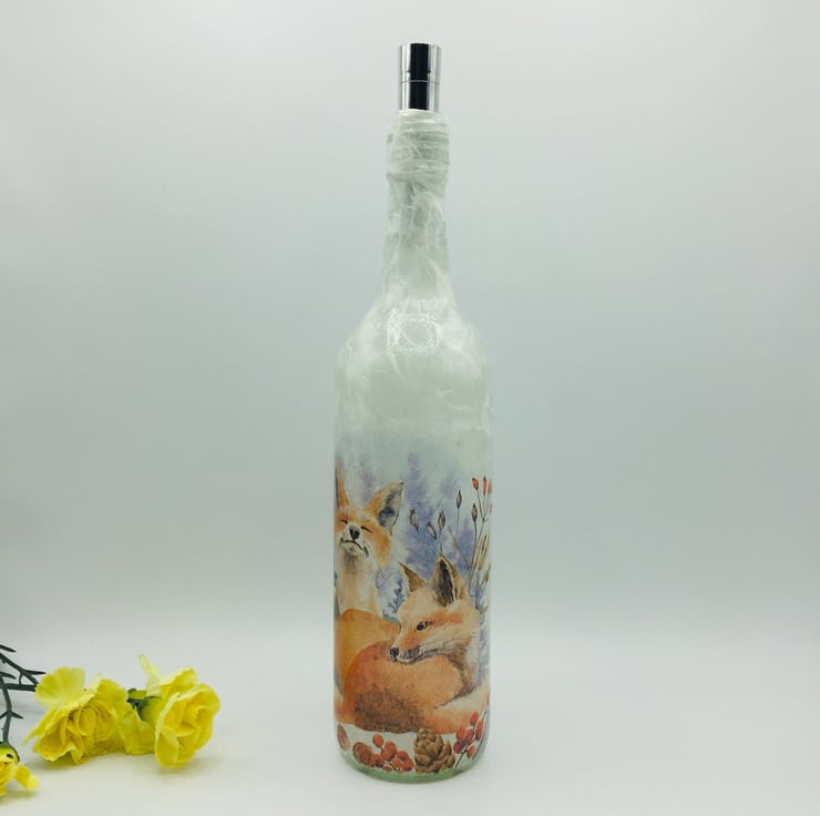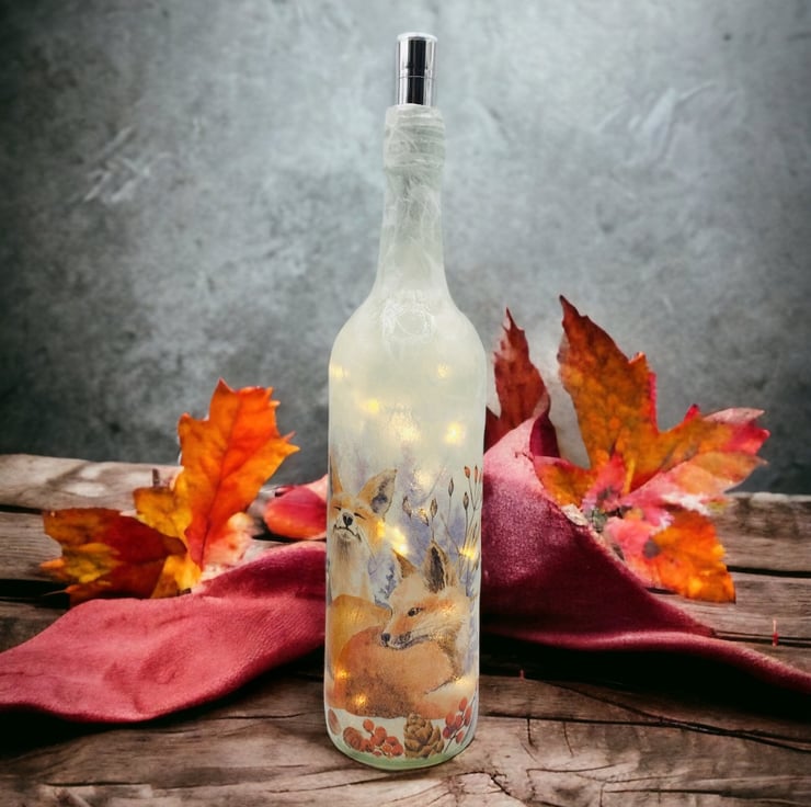This decoupaged Bottle Light, is a must-have for all fox enthusiasts and lovers of the autumn season!