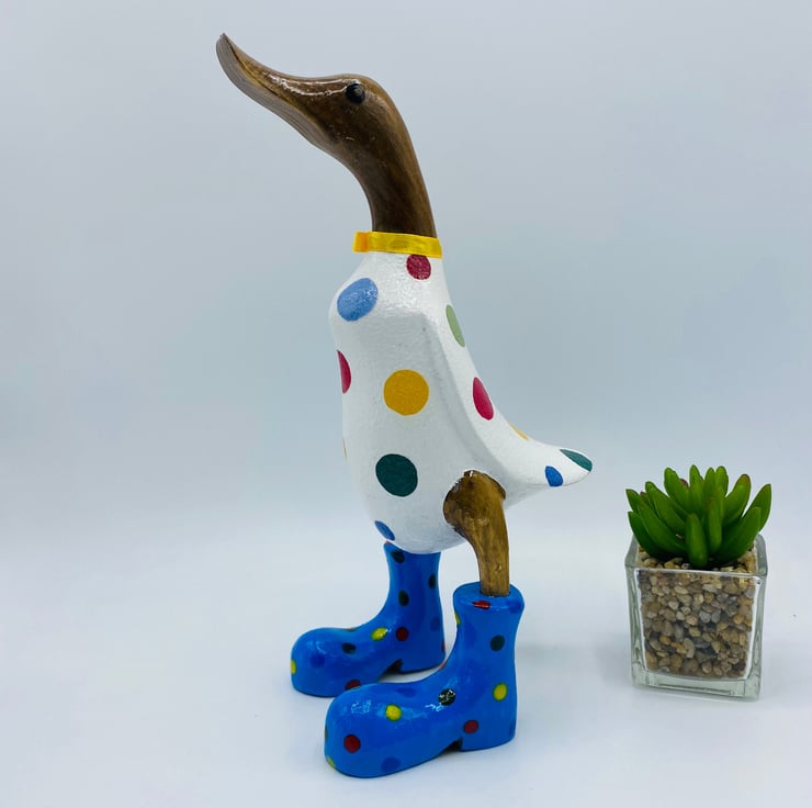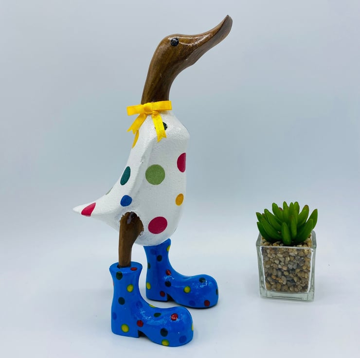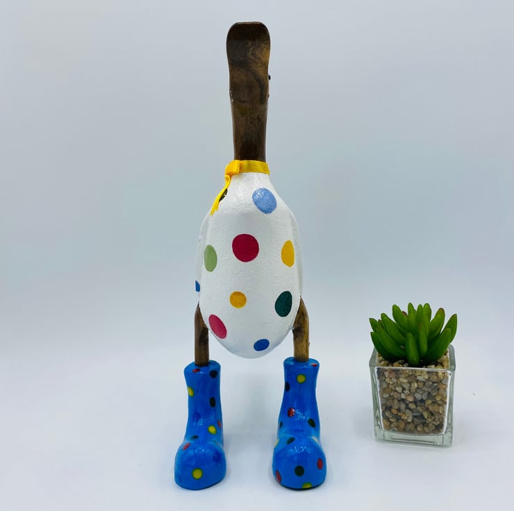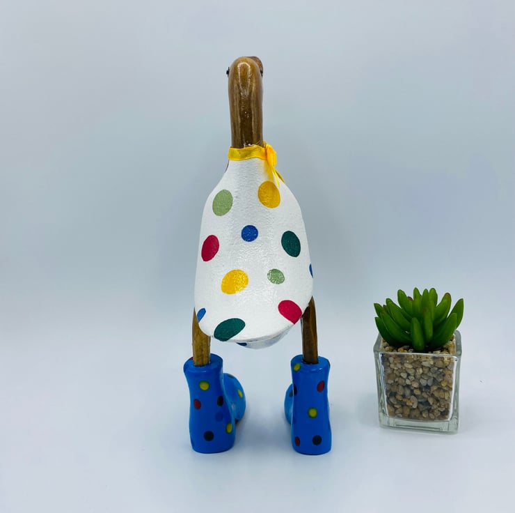 Introducing our charming Bamboo Duck in Wellies (approx 25cm). Dottie, the duck brings a dash of whimsy to any space, inspired by the timeless and playful designs of Emma Bridgewater. Adorned with cheerful polka dots, this ducky friend is sure to brighten up your home or garden. Hand-decorated with love, this unique piece is perfect for collectors and nature enthusiasts alike. Add a touch of flair and happiness to your decor with this adorable Bamboo Duck in Wellies!