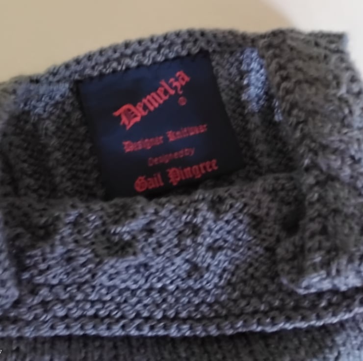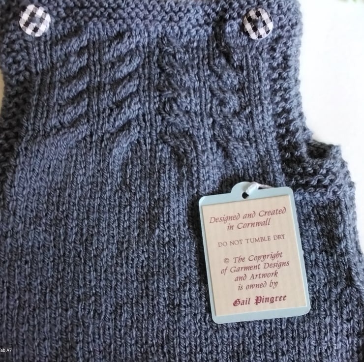 The designer garment tag has been hand stitched to the back bib edge. It has the care instructions woven within it for lasting reference and as proof of it's origins if gifting. A Demelza Designs garment swing tag will be attached to the front of the garment providing a total professional touch.