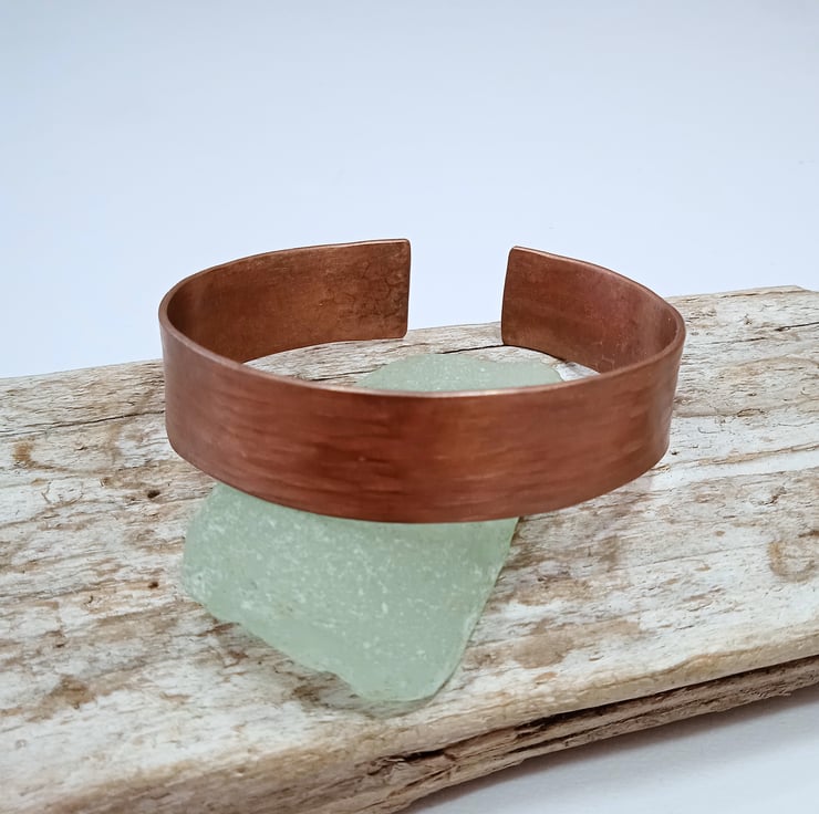 I have handmade this cuff bracelet from copper to which I have given an interesing hammered and brushed finish before oxidising to create an attractive antiqued style finish.