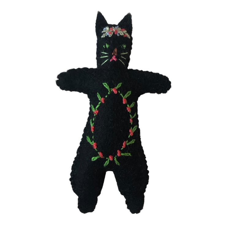All of my makes are eco friendly and made to last from 100% wool felt and stuffed with washed wool fleece sourced from Yorkshire. I use DMC cotton thread to embroider folk patterns and stitches creating totally unique heirloom treasures.