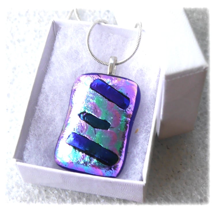 Lilac Diagonals 251 Dichroic Glass Pendant silver plated chain