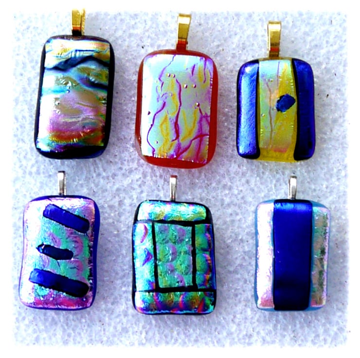 The dichroic glass cabochons for my pendants are all unique and handmade, by me, with love.