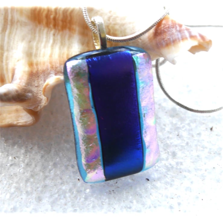 Lilac Purple 253 Dichroic Glass Pendant silver plated chain