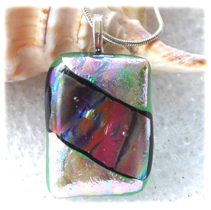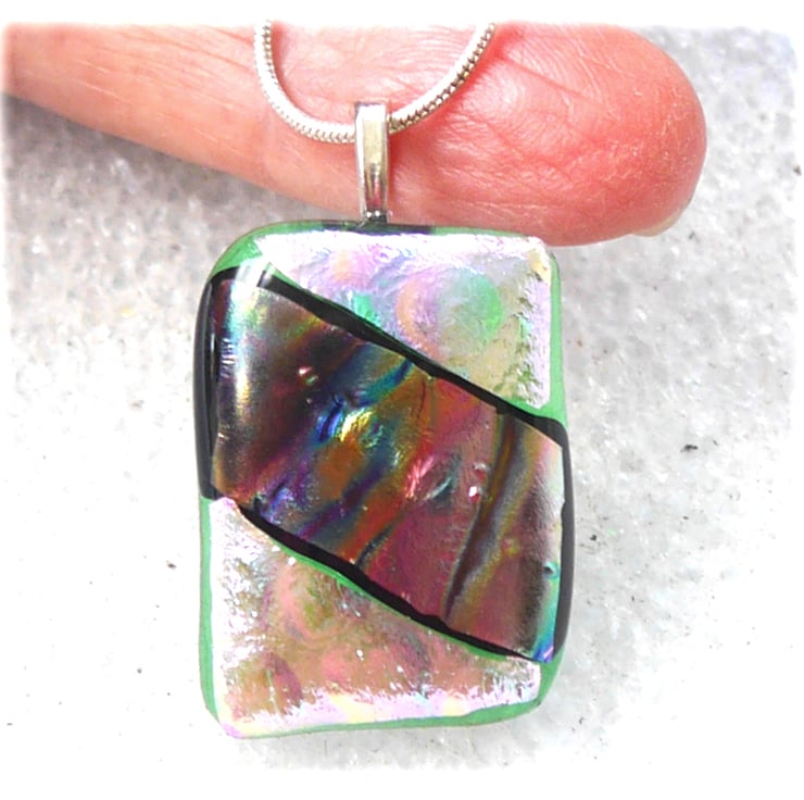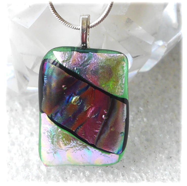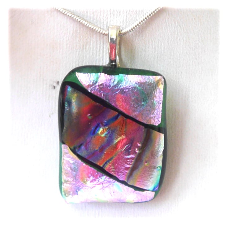 Lilac Green 256 Dichroic Glass Pendant silver plated chain
