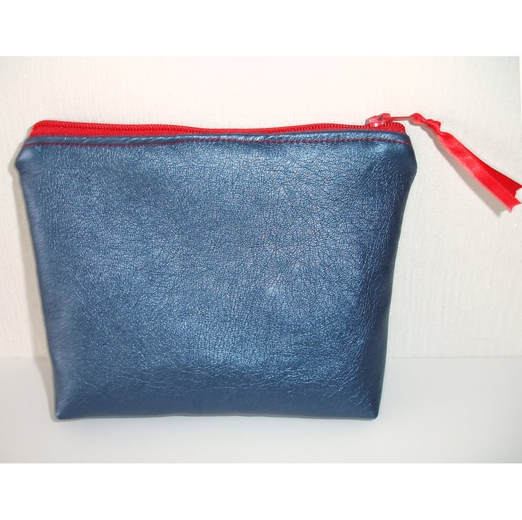 The purse is lined with a contrasting bright scarlet red fabric and has contrast stitching with a red zip which gives it a contemporary offset look.