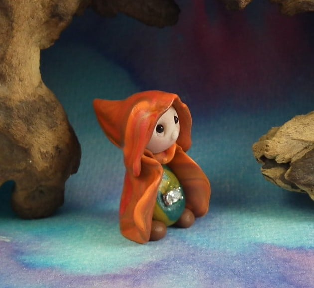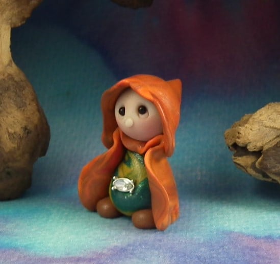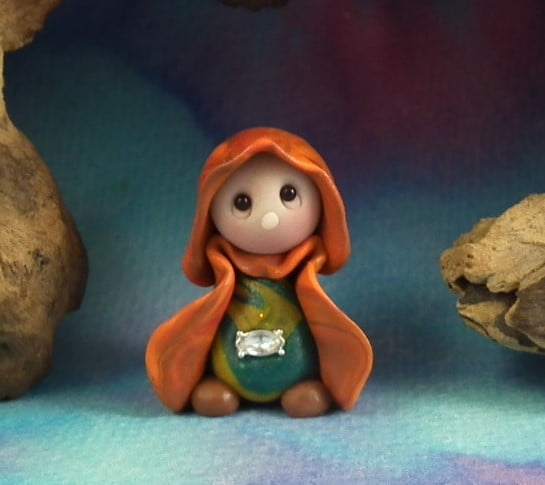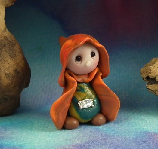 This is a 'one of a kind' creation having been entirely handmade without the use of moulds here at my studio on the Sussex Coast. Modelled with artist blend polymers, blushed before sealing with lacquer, Agnes has sparkling black onyx eyes and variegated robes. Agnes the Garden Gnome is just one and a half inches tall.