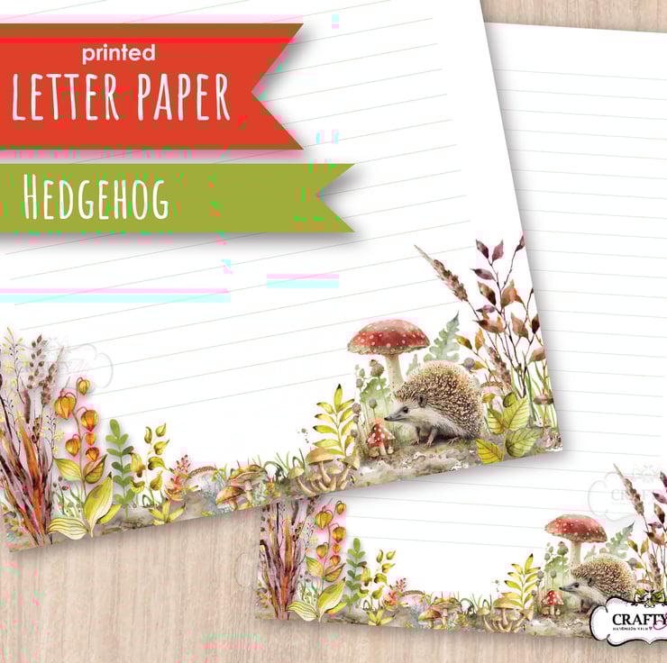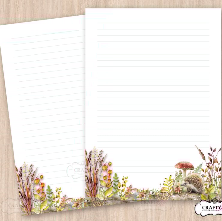 A set of 10 sheets of A5 size handmade letter writing / notepaper set with a lovely woodland animal and toadstools theme.