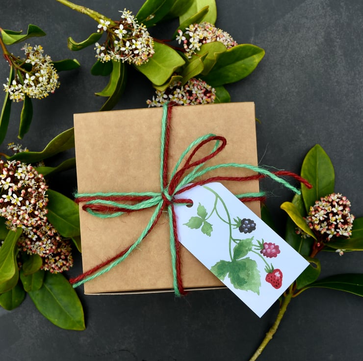 This will be beautifully packaged in a special brown cardboard box and tied up with coloured string. One of my personally designed gift tags will be attached, on which you can write your own message, or I can add a message for you.