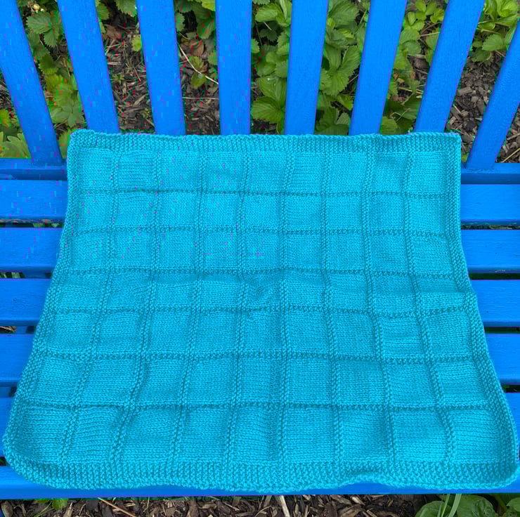Hand knitted emerald green baby blanket, knitted with soft acrylic yarn.