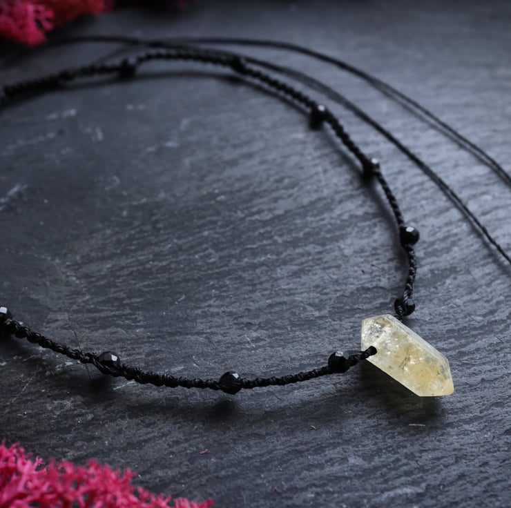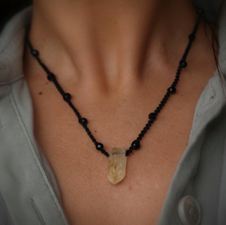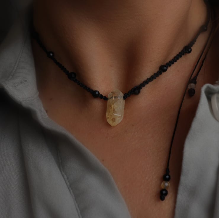 Adjustable necklace with natural stones Tourmaline and Citrine in black