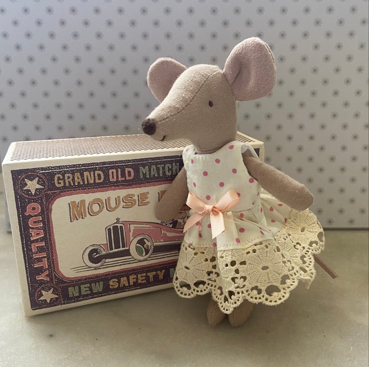 Beautiful handmade clothing sets for little mice . All made from gorgeous vintage fabrics and lace .