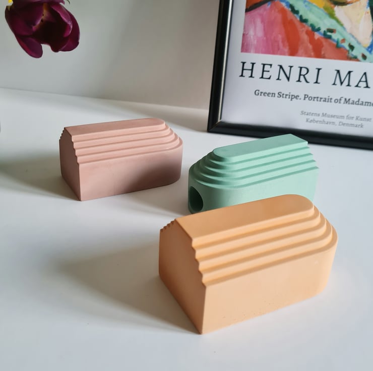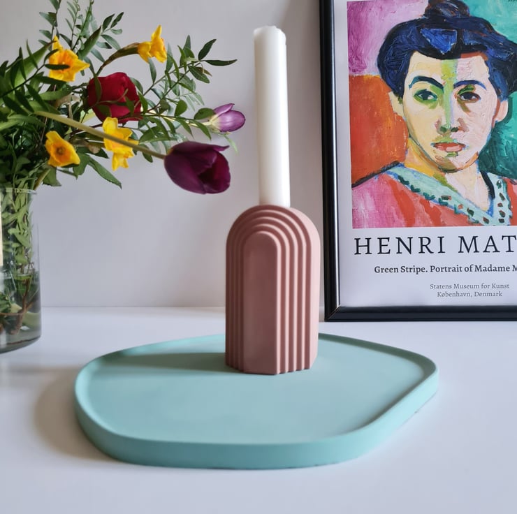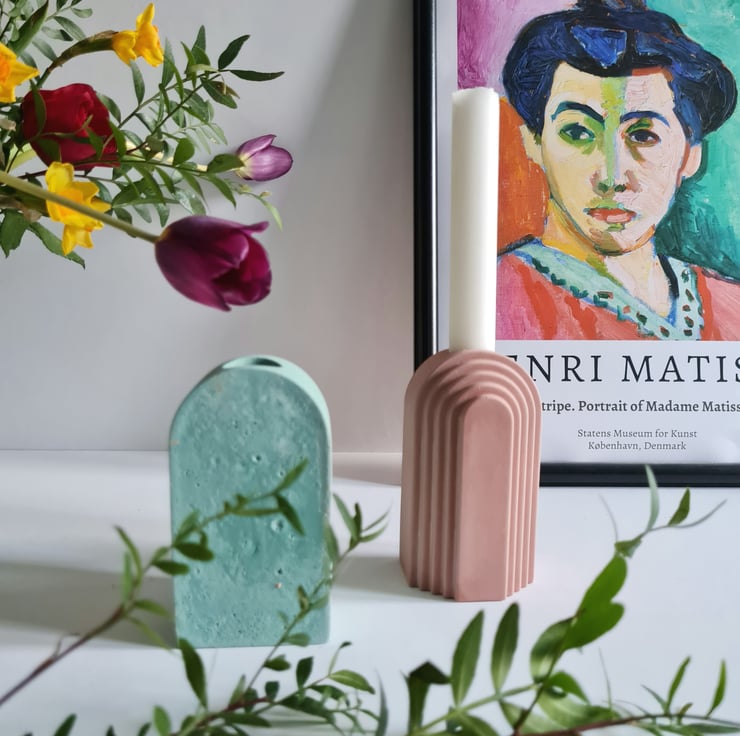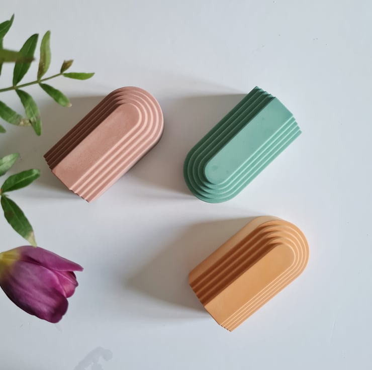 Embrace the essence of our well-loved candle holders, now adorned with a captivating retro colourway. These arch-shaped pieces have found their place in our new collection, offering a modern twist on the art deco era while striking a perfect balance between structure and the organic charm of a half-circle.