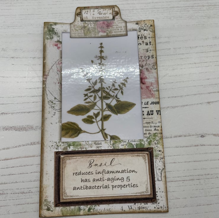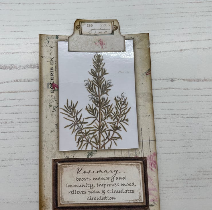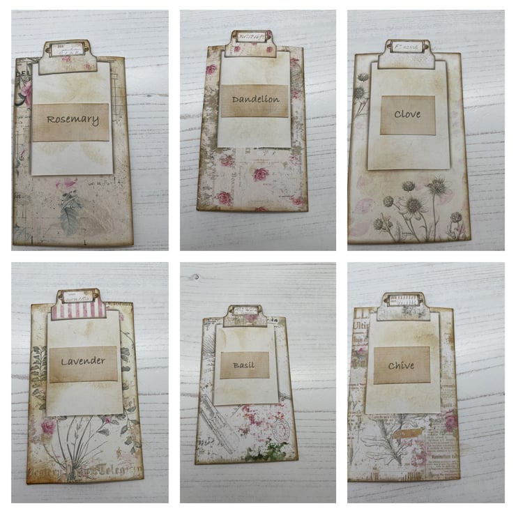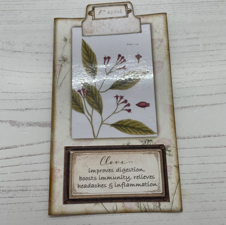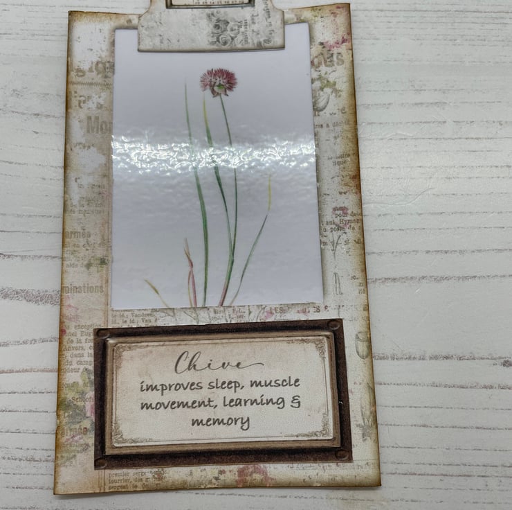 Selection of herb laminated images, mounted into specimen pockets. Descriptive plaque on the front and tab top. Ideal to add to a journal or even a card topper.
