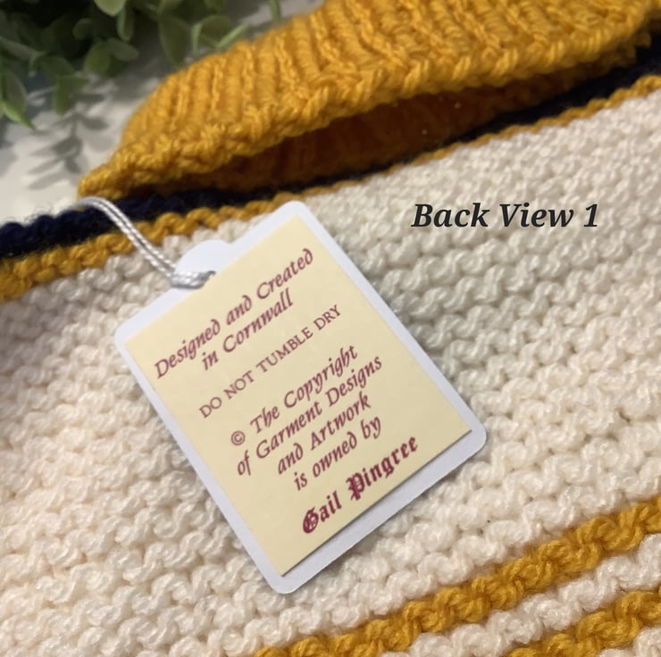 Baby knitwear is designed and hand crafted by Demelza Designs in Cornwall meeting UK baby safety standards, Only branded premuim acylic, acrylic/natural fibre blends or pure natural fibre yarns are used in baby knitwear which conforms to BS984/76 standards.