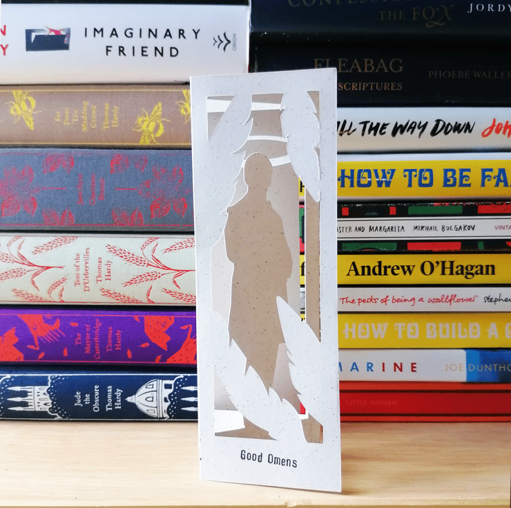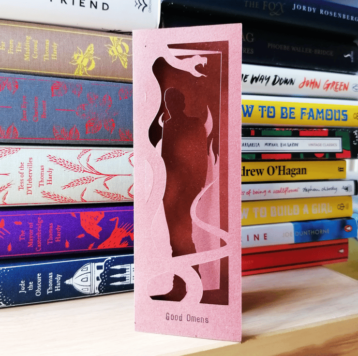 These Good Omens inspired bookmarks are made from a high quality textured card. Each bookmark is carefully folded and stamped by hand.