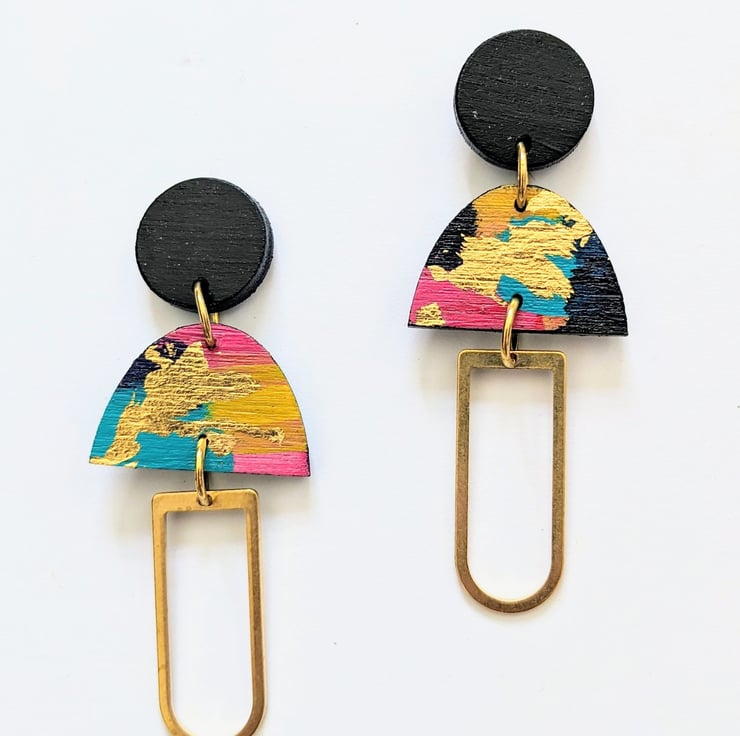 Super lightweight and comfortable to wear, these are created using a laser cutter on 3mm eco-friendly birch plywood. They are then individually sanded and carefully painted and finished with a layer of varnish and gold leaf detail.