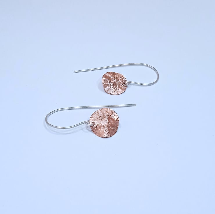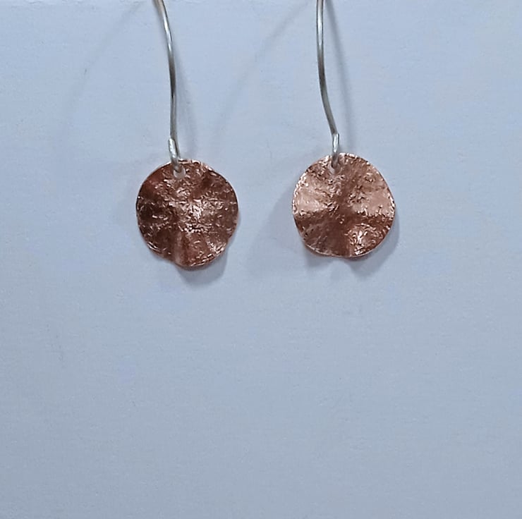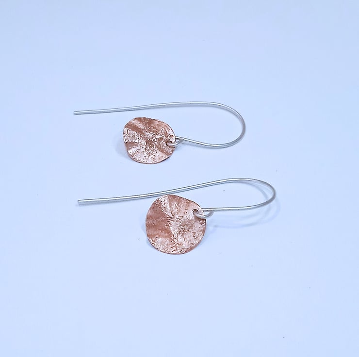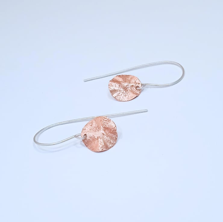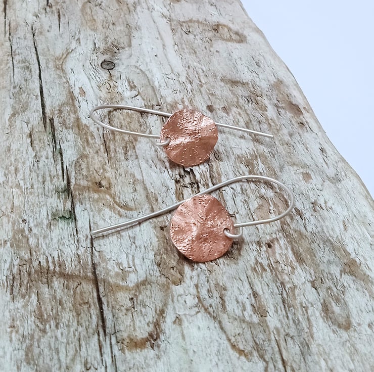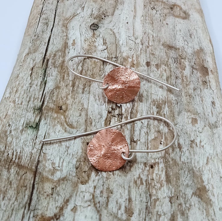 The copper discs are hung from handmade sterling silver earring wires.