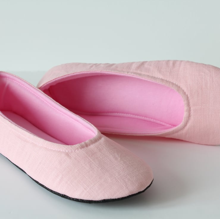 Ladies pale pink slippers, house shoes, slippers, linen slippers, womens slipper