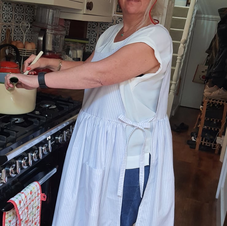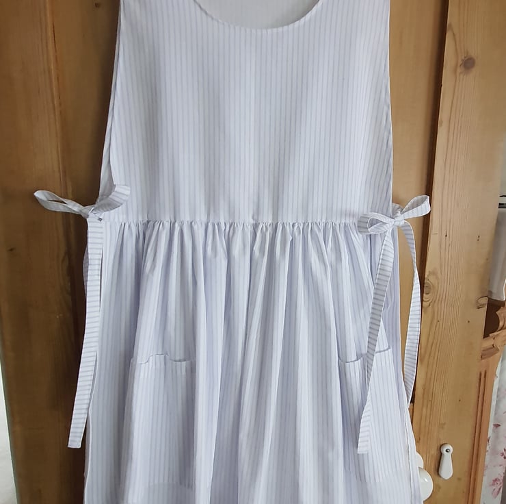 You'll feel like a Domestic Goddess in this apron made from vintage fine cotton ticking stripe fabric! Ties at sides so fully adjustable and no annoying straps around your neck. As these are vintage fabrics only one available.