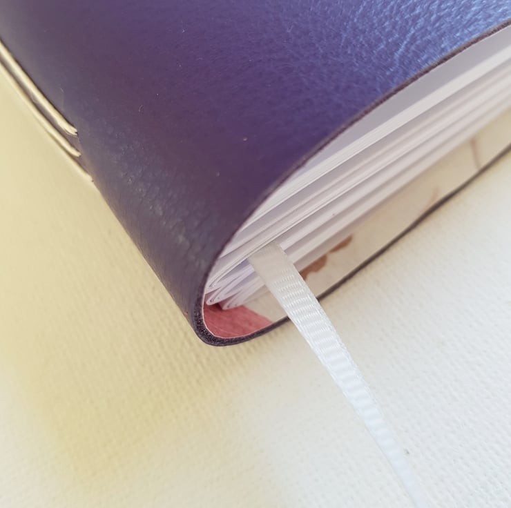 When in use the Journal lies completely flat. There is a handy Ribbon Page Marker. The Journal can also be refilled if you wish, with a kit available in my Folksy Shop.