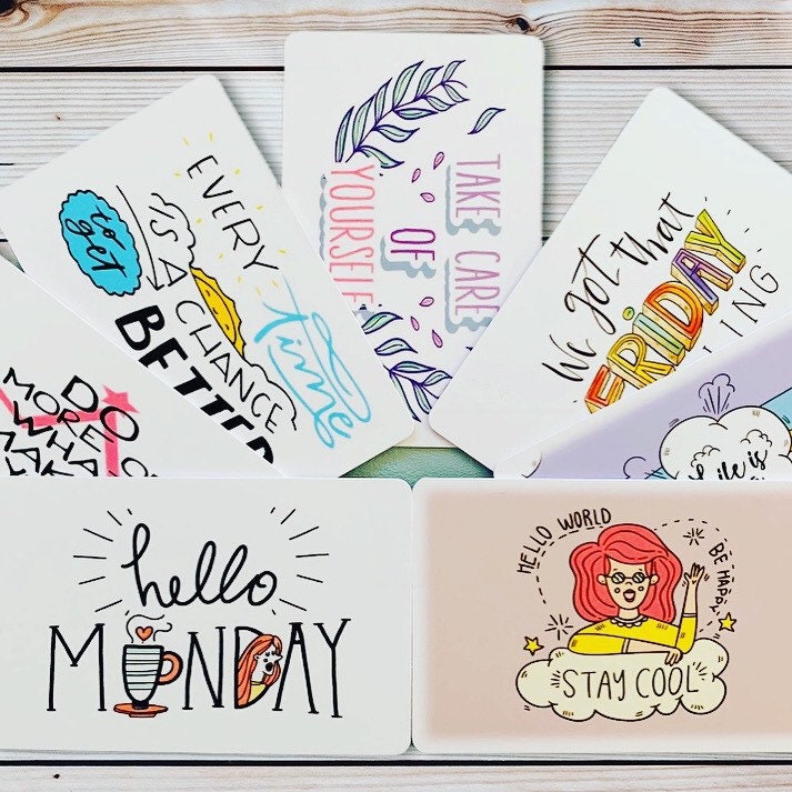 7 Mindfulness cards, one for each day of the week, supplied with handy display stand, ideal to sit on work desk or bedside table.