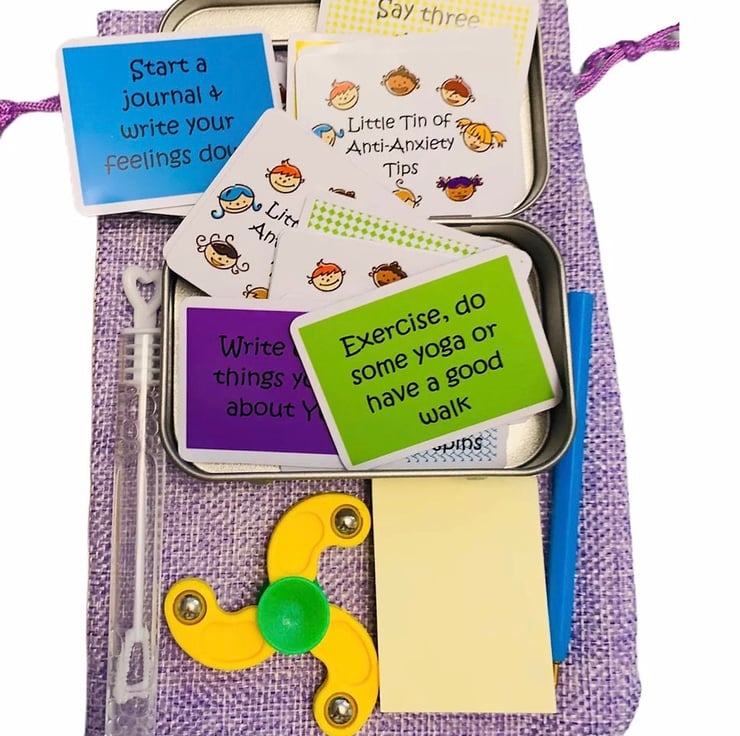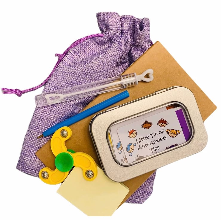 Kit contains our Little Tin of Anti-Anxiety Tips for children.