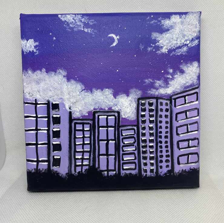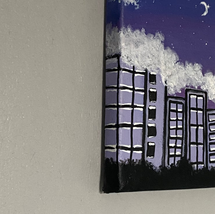 Original Acrylic Painting On Canvas Night City Sky