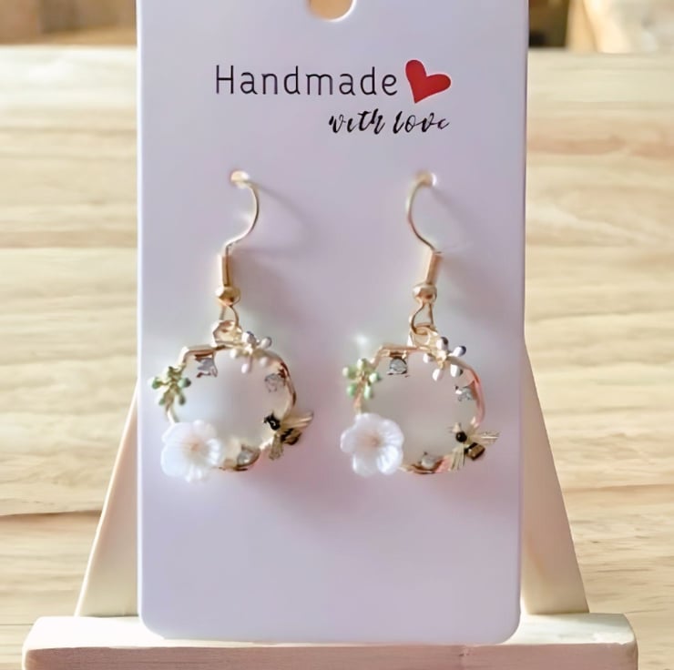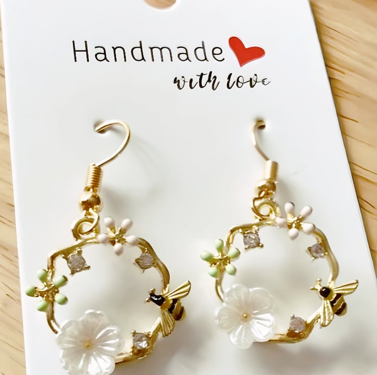 Very pretty earrings with flowers, bees and a hint of sparkle